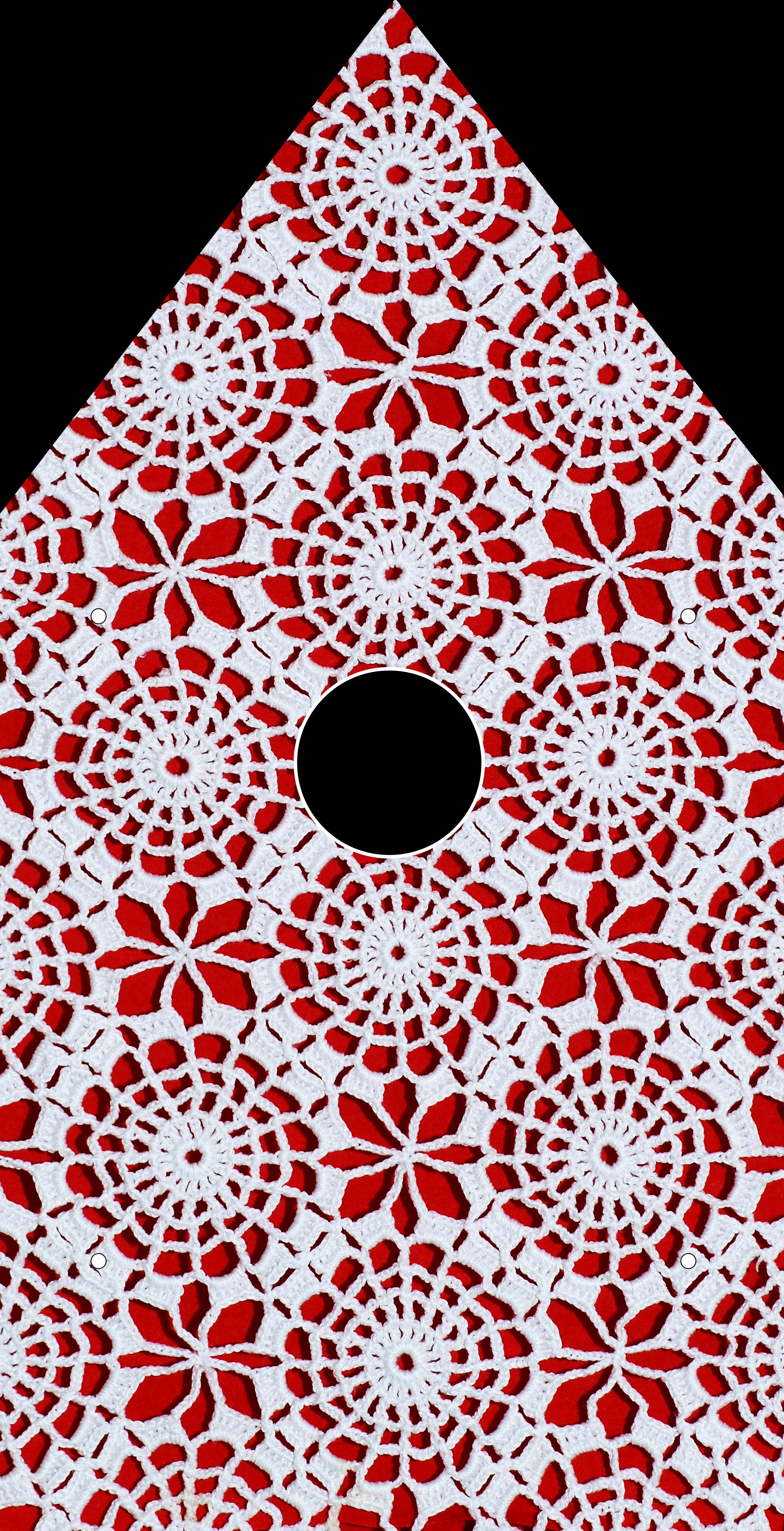 Beautiful vintage lace scanned against a deep read background makes for a birdhouse that is stricking in its simplicity and familiarity.