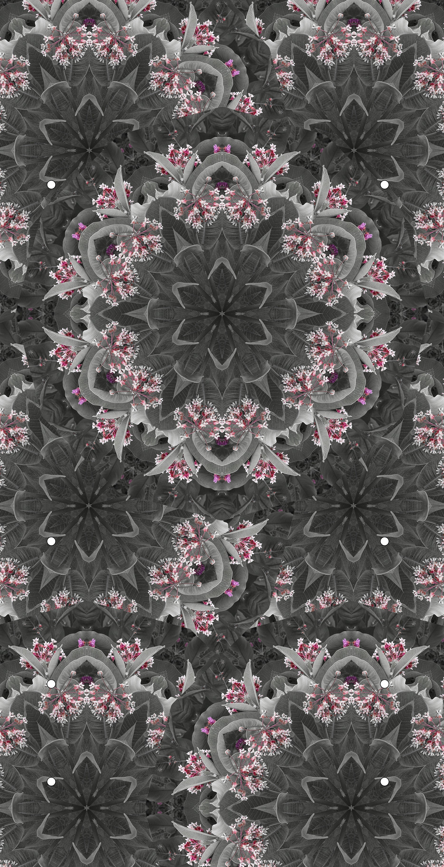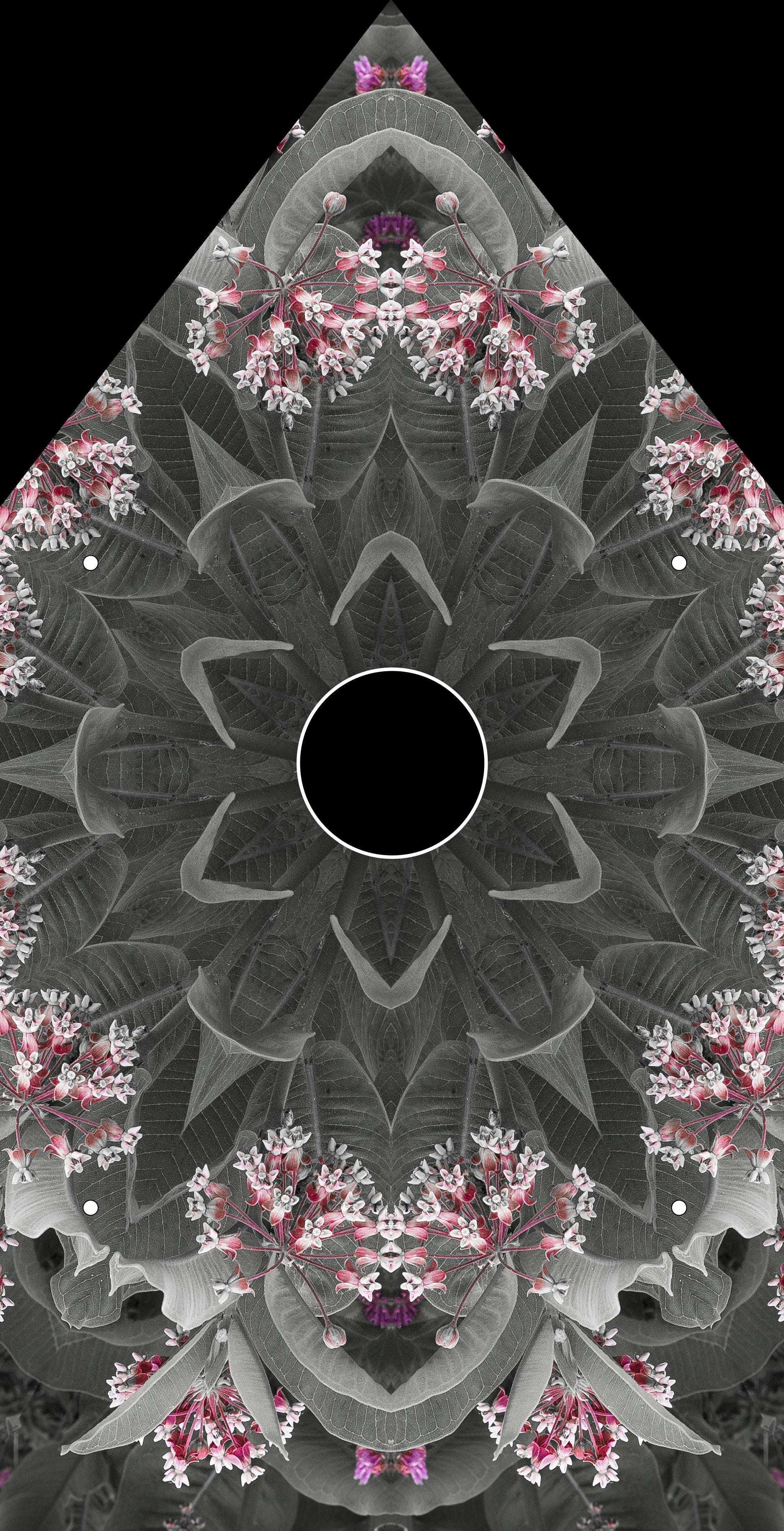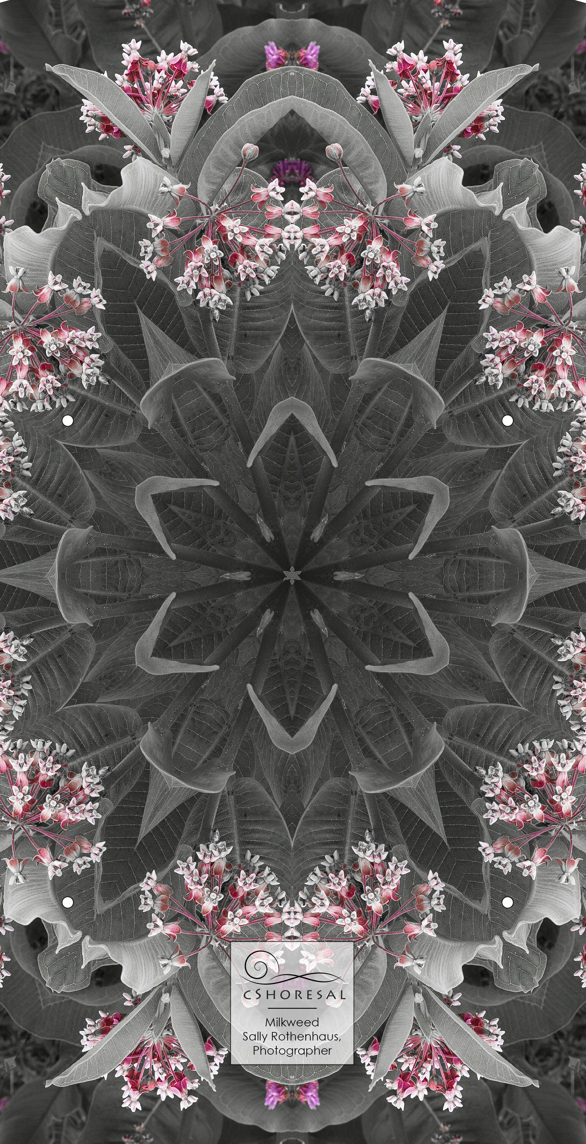 Sally removed the greens of the original image leaving a striking grey & white, with pink Milkweed florets. It is reimagined in the 12-sided dodecagon shape that is a favorite of Sally's because of it's usefulness making clock faces. Happily, it also works great on birdhouses!
