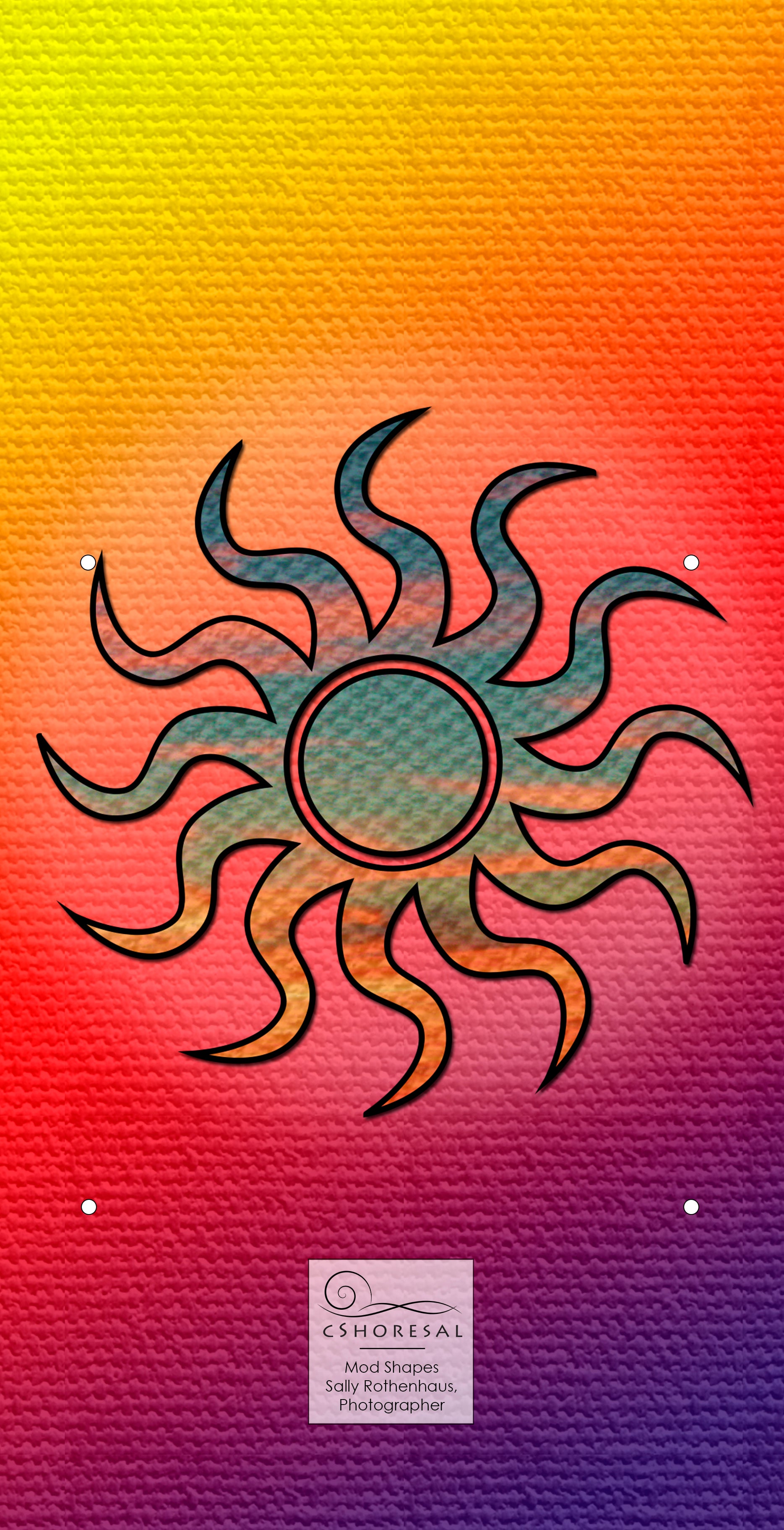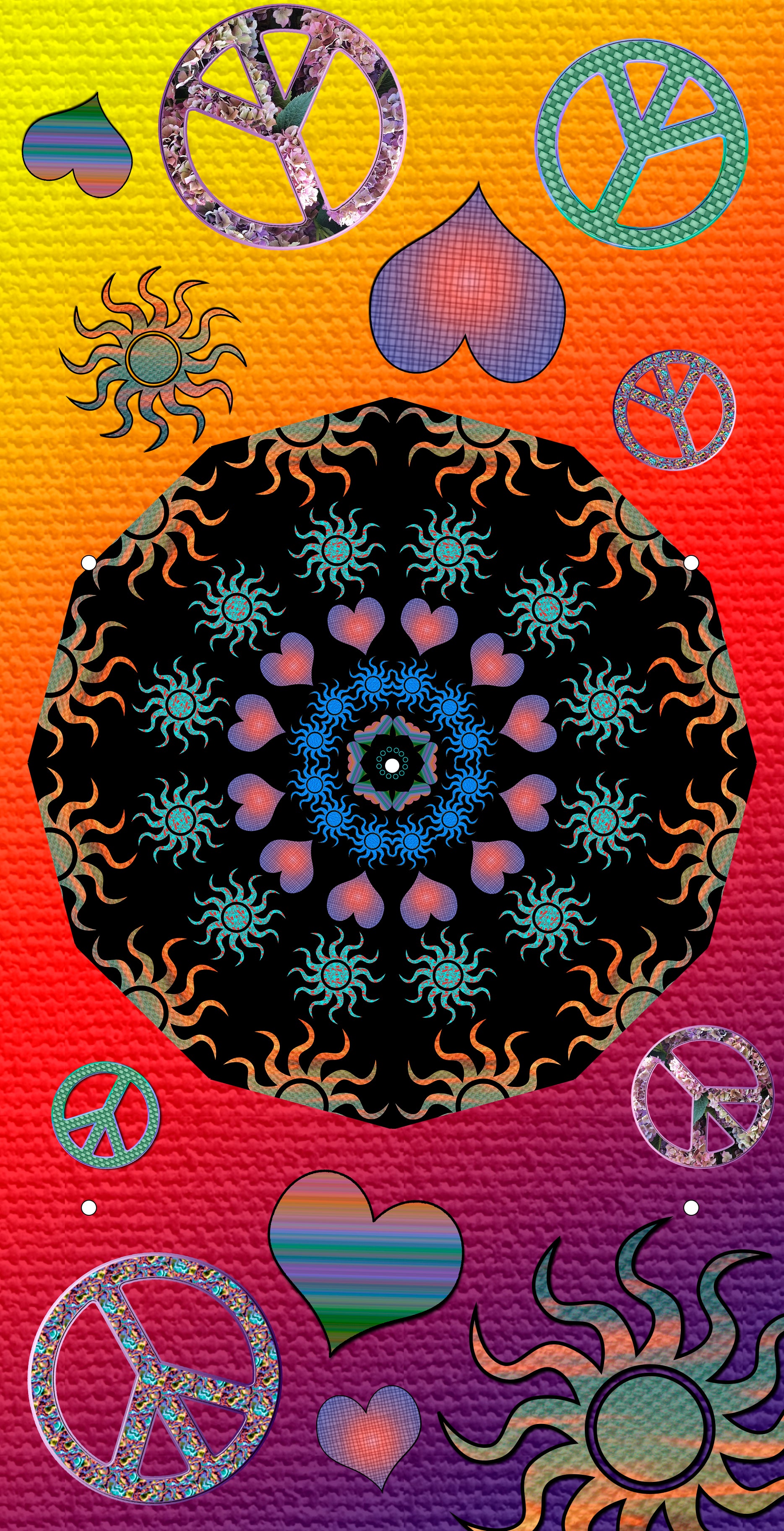 This fun and colorful birdhouse combines Sally's photos with retro shapes of hearts, peace signs, and hearts. Fabric textures finish off the look for a bright and happy birdhouse that will light up your landscape.